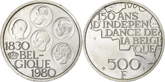 | Belgium, 500 Francs, Independence, 1980, Brussels, Silver Clad Copper-Nickel |