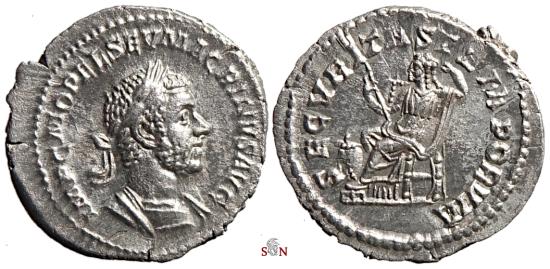 and cuirassed bust r. Rev: SECVRITAS TEMPORVM, Securitas seated l.,