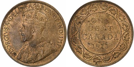 | | Coin, Canada, George V, Cent, 1913, Royal Canadian Mint, Ottawa, | | | King's bust left, Denomination above date within beaded circle, chain of leaves surrounds, E. B. MacKennal | | FEATURES |