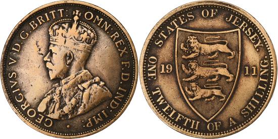 | | Jersey, George V, 1/12 Shilling, 1911, Bronze, , KM:12 | | | Crowned bust left, Pointed shield divides date, E. B. MacKennal | | FEATURES |