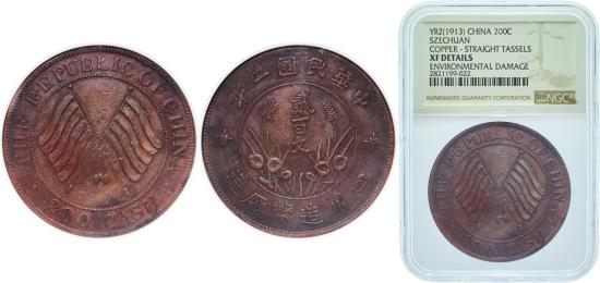 China Szechuan Province 年二國民華中 (1913) 200 Cash (Copper) Copper NGC XF Y 459