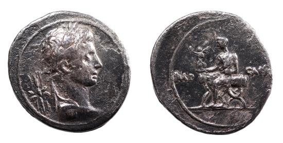 Octavian AR Denarius. Italian mint, 30 - 29 BC. Rare.