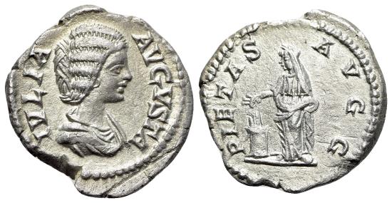 Julia Domna (193-217). AR Denarius. Rome, 200-220. R/ PIETAS