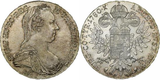 | | Austria, Joseph II, Thaler, Marie-Thérèse, 1780, Restrike, Silver, | | | Bust right, Crowned imperial double eagle, heads in haloes, Many varieties exist. This type has been stuck by many different mints over the years, with some varieties commanding high premiums. | | FEATURES |