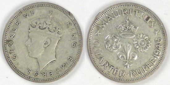 | MAURITIUS - British Colony, George VI, 1946, ¼ Rupee, about Extra Fine |