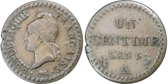 | | France, Centime, Dupré, AN 6, Paris, Bronze, , Gadoury:76, KM:646 | | | Dupré, Liberty head left, Value within beaded circle, REPUBLIQUE FRANCAISE <Bullet> | | FEATURES |