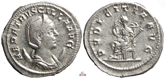 Obv: HER ETRVSCILLA AVG, Diademed and draped bust right on crescent.