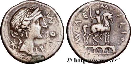 AEMILIA Denier c. 114-113 AC. Rome silver
