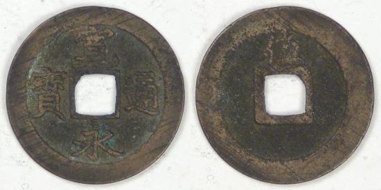 Obv: Four characters around square hole “Currency of Kan'ei”