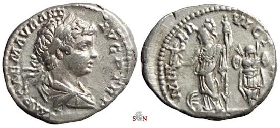 Caracalla Denarius, struck AD 198 at Rome mint. Obv: