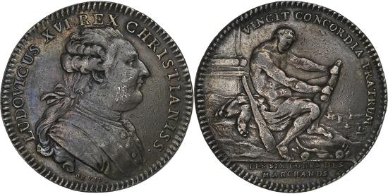 | France, Token, Louis XVI, Hercule, les Six Corps des Marchands, n.d., Silver |