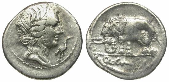 81 BC - Roman Republic. Q. Caecilius Metellus Pius AR Denarius / Elephant
