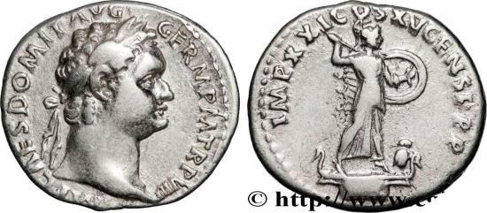 DOMITIANUS Augustus Denier 89-90 Rome R1 silver Obverse : IMP CAES DOMIT AVG - GERM PM TR P VIIII Tête laurée de Domitien à droite (O*) Reverse : IMP XXI COS XV CENS P P P Minerve ou Pallas debout à droite sur une proue de galère, coiffée du casque corinthien, vêtue de légide et du chiton, combattant, brandissant de la main droite une haste et tenant un bouclier rond de la gauche ; une petite chouette, à ses pieds à droite Commentary : Monnaie idéalement centrée. Superbe portrait de Domitien. Revers agréable. Patine grise