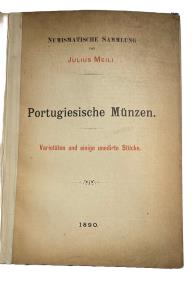 Portugiesische Munzen. Varietaten und einige unedirte Stucke, 1890, 2 pages, 4 fine plates, text in German and then in Portuguese, contents a bit browned, later blue cloth, covers bound in. Good-Very Good.