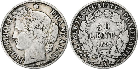 | | France, 50 Centimes, Cérès, 1895, Paris, Silver, , Gadoury:419a | | | Cérès, Laureate head left, Denomination within wreath | | FEATURES |