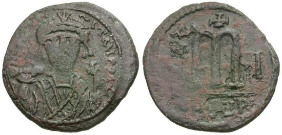 Title: *Sear 532* Byzantine Empire. Maurice Tiberius (AD 582-602) Æ Follis
