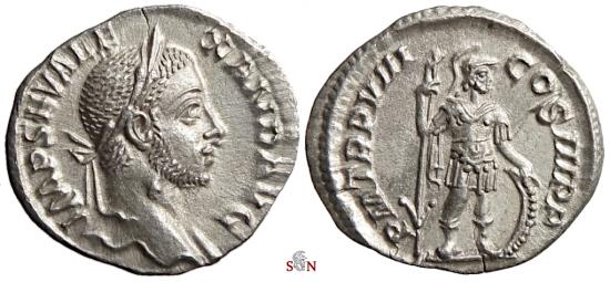 hand and placing left on shield set on ground. 2,52 g, 19 mm. RIC IV 91 var. (no