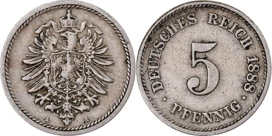| | Germany, Wilhelm I, 5 Pfennig, 1888, Berlin, Copper-nickel, | | | FEATURES |