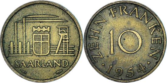 | Coin, SAARLAND, 10 Franken, 1954 |