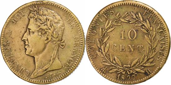 | | French colonies, Charles X, 10 Centimes, 1827, La Rochelle, Bronze, | | | FEATURES |