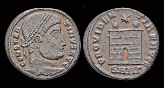 Constantine I AE follis campgate