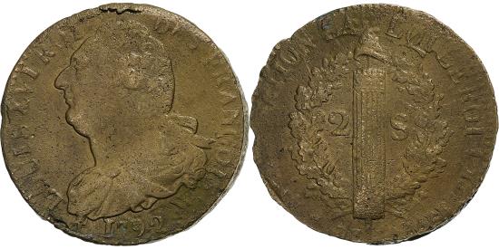 | | France, Constitution, 2 Sols, 2 sols françois, 1792 / AN 4, Arras, Métal de | | | FEATURES |