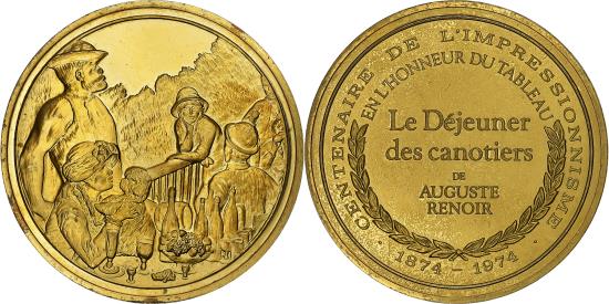 | | France, Medal, Le Déjeuner des canotiers, Auguste Renoir, Vermeil, | | | Medal for the Centenary of Impressionism, 1874-1974., Medal for the Centenary of Impressionism, 1874-1974. | | FEATURES |