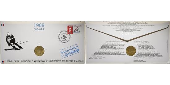 | | France, Medal + stamp, XVIème JO d'Albertville, Grenoble, 1991, Copper-nickel | | | Stamped envelope from the Monnaie de Paris for the 1992 Albertville Winter Olympics, featuring the 1968 Grenoble Winter Olympics. Postage stamp with the effigy of Curling, with a stamp of Curling in Pralognan-la-Vanoise. "Stamp-Medal" envelope no. 13, 9th envelope in the Albertville collection. | | FEATURES |