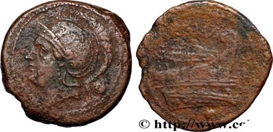 ROMA Proue de galère à droite (rostre) ; au-dessous, un globule