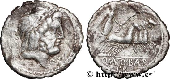 Q. (ANT)O. B(AL)B/ PR Victoria (la Victoire) debout dans un quadrige galopant à droite, tenant une couronne de la main droite, une palme et les rênes de la gauche