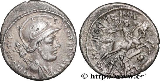 P. - FONTEIVS. P. F - CAPITO. III. VIR Buste casqué et drapé de Mars à droite vu de trois quarts en avant avec le trophée sur lépaule