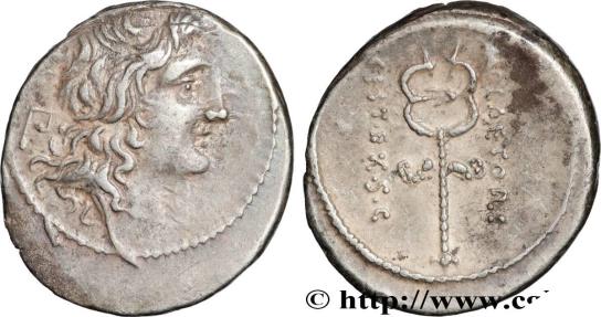 Anépigraphe Tête masculine juvénile (Bonus Eventus) à droite, les cheveux longs ; derrière la tête, symbole
