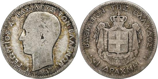 | | Greece, George I, Drachma, 1883, Paris, Silver, , KM:38 | | | Head left, Arms within crowned mantle | | FEATURES |