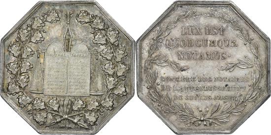 | France, Token, Notaires de l'Arrondissement de Senlis, Oise, Silver, Caqué |