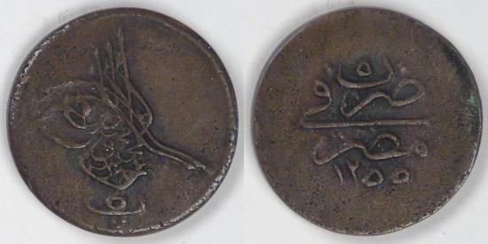 EGYPT - Ottoman Empire, Abdul Mejid, AH1255/5 (1843), 5 Para, Very Fine