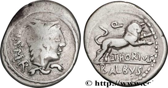 L. THORIVS/ BALBVS/ Q Taureau chargeant à droite