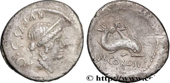(MN). CORDIVS en monogramme à l’exergue Petit personnage ailé (Cupidon) chevauchant un dauphin nageant à droite