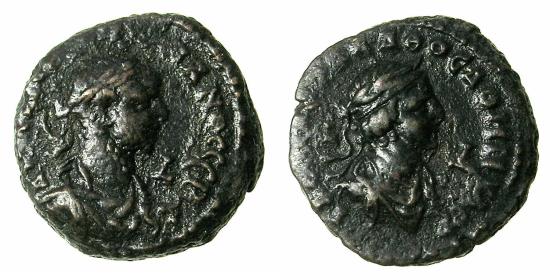 Reverse.IAC( OYA) (BAΛΛ)ΑΘΟC AΘΗΝΟY AVT, diademed bust right of Vabalathus, across field regnal year L-Δ,( = regnal year four of Vabalathus= AD 270 ). Ref:SNG Cop 901, Emmett 3914. Good very fine, part of legend off flan. |