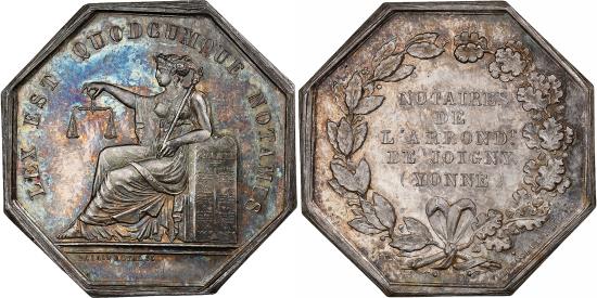 | France, Token, Notaires de l'Arrondissement de Joigny, Yonne, Silver, Brasseux |