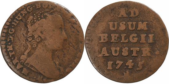 | Austrian Netherlands, Maria Theresa, Liard, 1745, Bruges, Copper, |