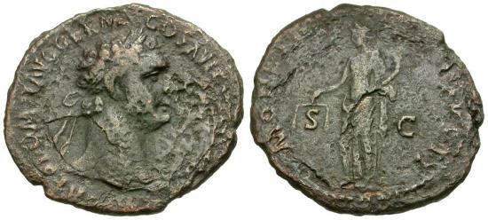 Title: Domitian (AD 81-96) Æ As / Moneta
