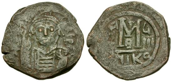 Title: *Sear 512* Byzantine Empire. Maurice Tiberius (AD 582-602) Æ Follis