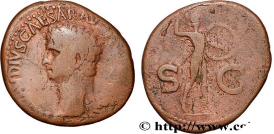 Commentary : Monnaie centrée à l’usure importante mais régulière. Joli portrait de Claude. Patine marron avec des reflets cuivrés