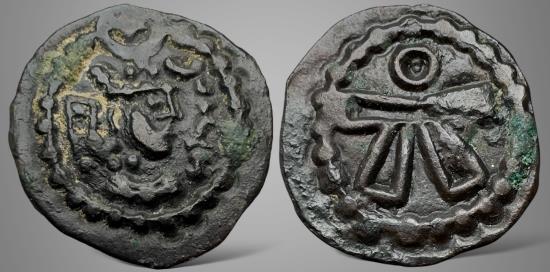 Sasanian Kings. Peroz I. (457-484 AD). AE Pashiz from Marw. 1.24gm, 15.9mm, Minted in Marw by style & design. King Peroz crowned bust right / fravahr. Zeno#352467 (It's me there) / SNS-A47. About extremely fine, natural dark shining patina with some earthen deposit. The finest known specimen. an extremely rare piece to be proud of. RRRR |
