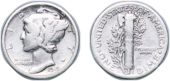 United States Federal republic 1919 S 1 Dime "Mercury Dime" Silver (.900) San Francisco Mint (8850000) 2.44g VF KM 140 Schön 133
