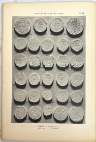 | Catalogue des Monnaies Françaises de la Bibliothèque Nationale, Les Monnaies Capétiennes ou Royales Françaises, deuxieme section, de Louis Louis IX a Louis XII, Paris, 1932, xxxiii, 406 pages, tables of letters, 36 fine plates, unbound, first several leaves chipped, contents clean with several light pencil notations. |