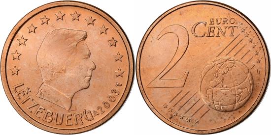 | Luxembourg, 2 Euro Cent, 2003, Utrecht, Copper Plated Steel, |