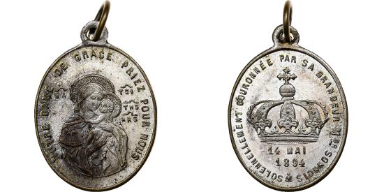 | | France, Medal, Couronnement Notre-Dame de Grâce, 1894, Tin, | | | Crowning by the Archbishop of Cambrai Mgr Sonnois in May 14th, 1894. | | FEATURES |
