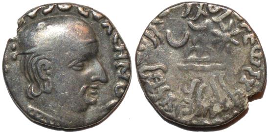 | INDIA, WESTERN KSHATRAPAS: Rudradaman (c.130-150 CE) Silver drachm, Legend B. CHOICE! |