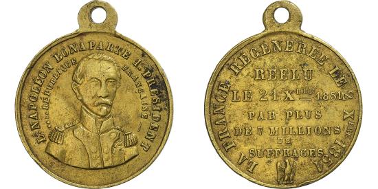 | | France, Token, Réélection de Louis Napoléon Bonaparte, 1851, Brass, | | | FEATURES |